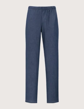 Unisex chef/cook pants with elastic waistband and drawstring closure, made of 100% cotton denim, extremely light and comfortable. Equipped with two side pockets and one back pocket, perfect for towels and utensils. Comfort fit. Sizes available from XS to XXXL. Washable up to 40°C.