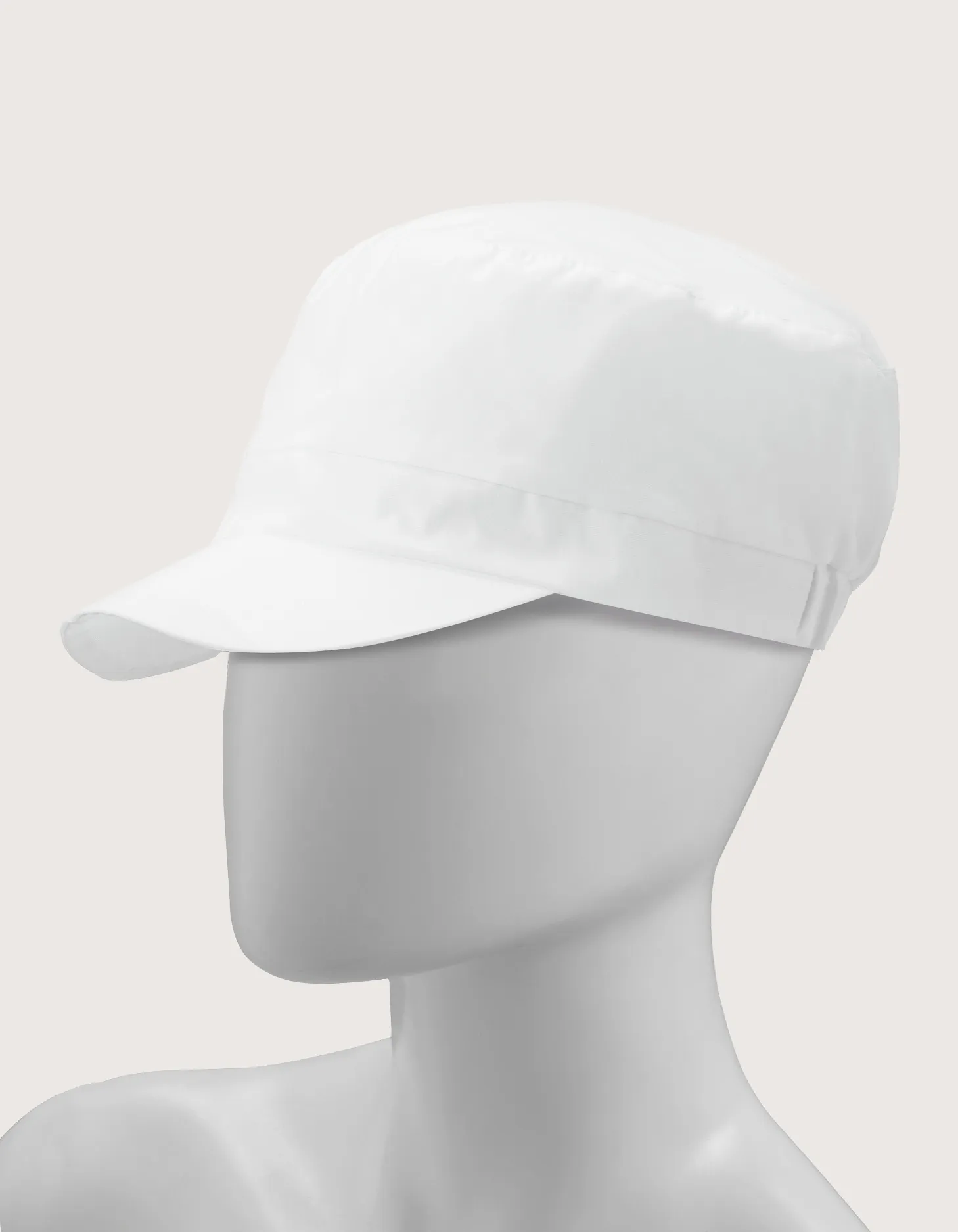 “Adam” unisex kitchen hat, with rear elastic, white color in mixed fabric 65% polyester – 35% cotton.