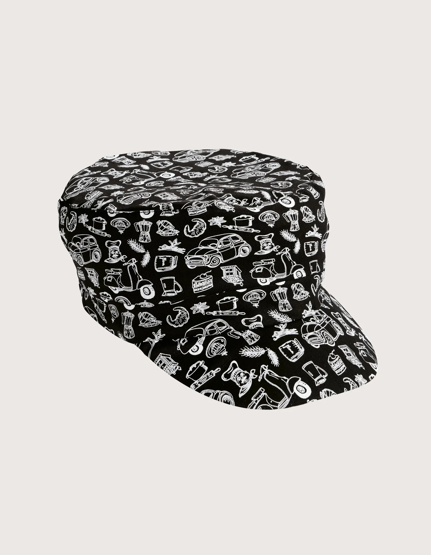 Pair of unisex chef/cook hats in 100% cotton, with elastic back and “Italy” pattern. Machine washable up to 60 degrees. The “Liam” chef hat collection is also available in: