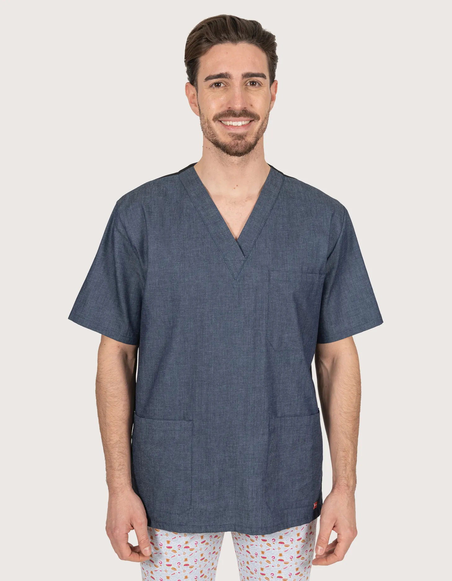 Unisex short sleeve denim jacket “100 Grams”. V-neck with three pockets: two on the sides and one on the chest. The jacket is made of 100% cotton denim fabric (100 g/m²), straight cut. Available sizes: from XS to XXXL. Washable up to 40°C. Particularly suitable for the healthcare, beauty, and pharmaceutical sectors (healthcare workers, doctors, nurses, beauticians).