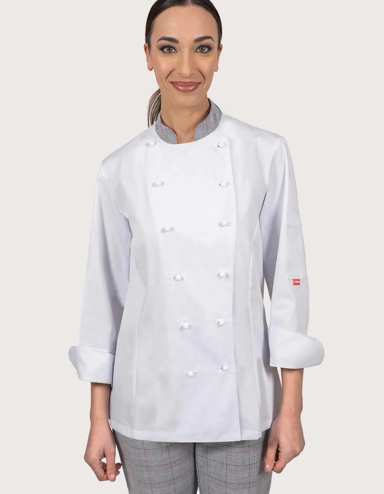 White Women’s Chef Jacket with Prince of Wales Collar