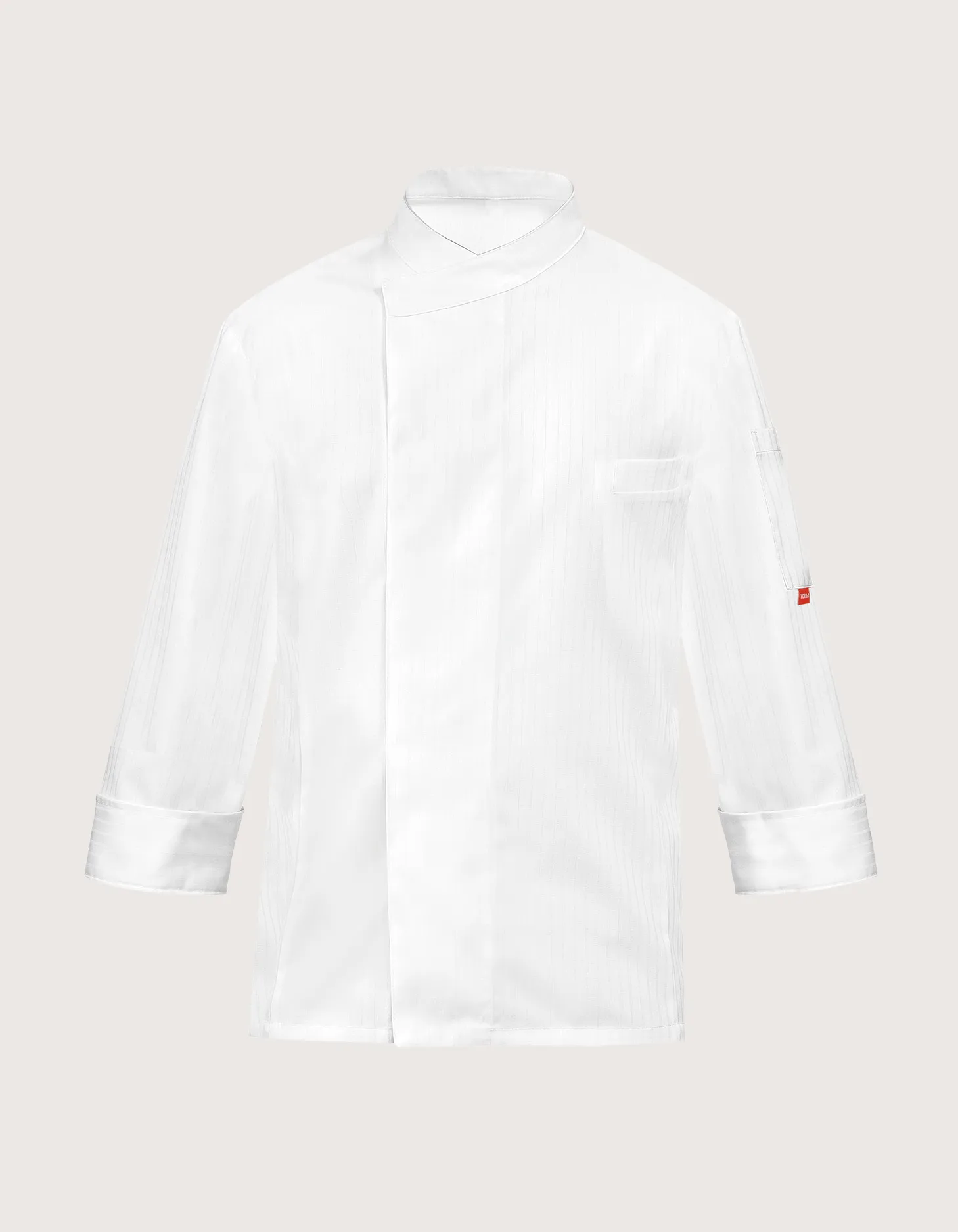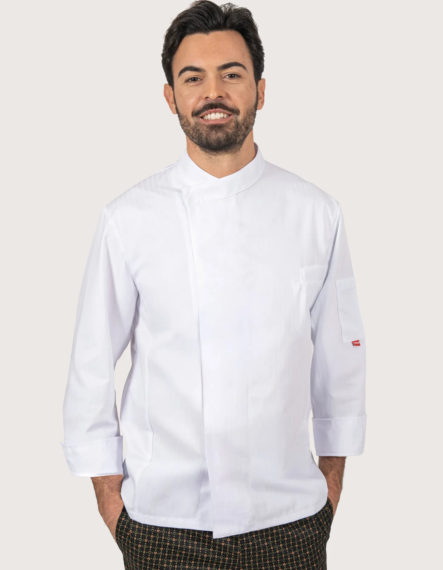 The King unisex chef jacket in white is a premium professional uniform for chefs, pastry chefs, gastronomy staff, and culinary professionals. Features: long sleeves; chest pocket and left sleeve pocket. Fabric: 65% polyester – 35% cotton; Closure: snap buttons. Available sizes: XS to XXXL. Washable up to 95°C. 100% Made in Italy. Also available in black.