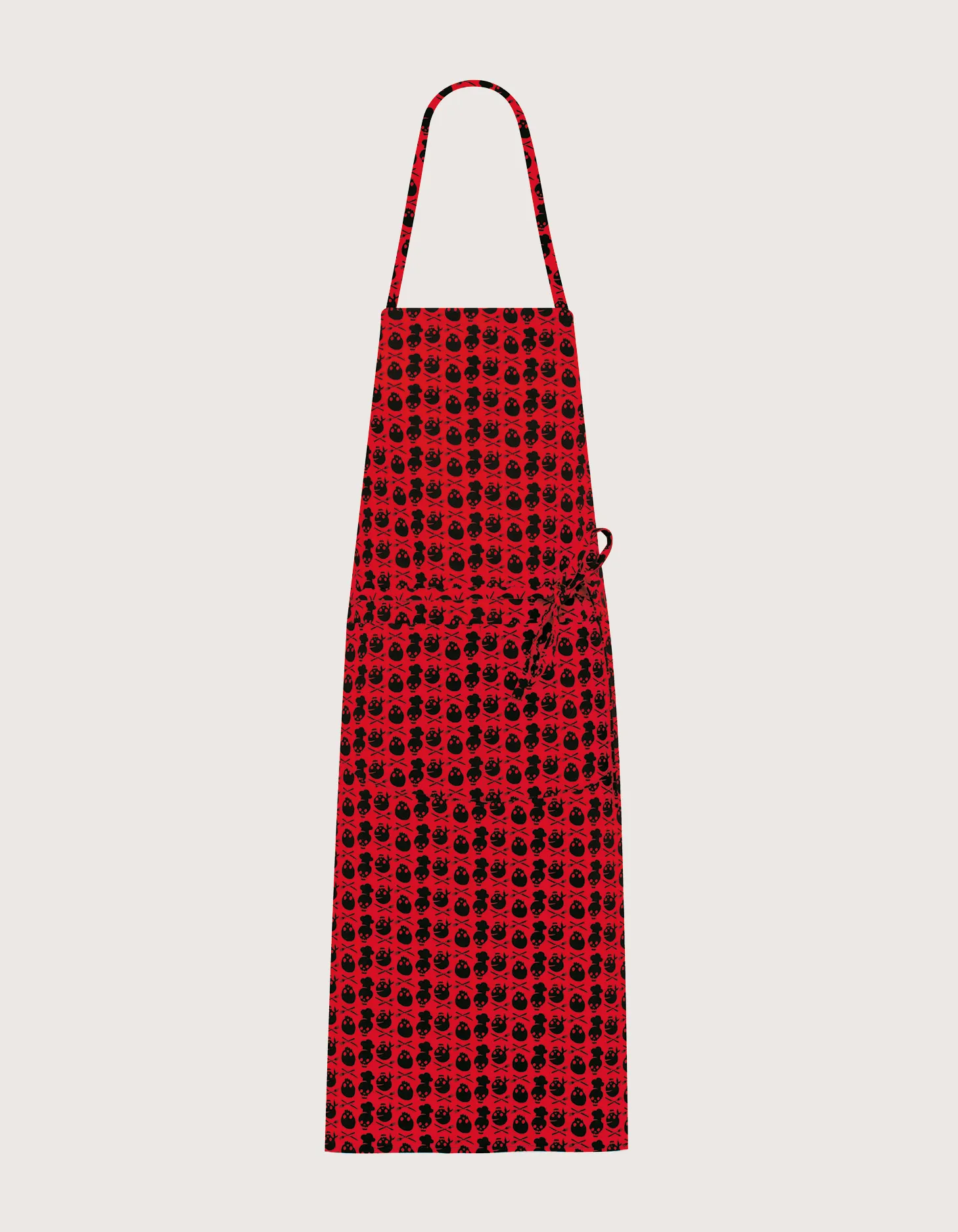 Long unisex apron for chefs/cooks, 70×95, black with “Skull” print. Made of 100% cotton, featuring a large central pocket divided in two compartments, adjustable velcro neck and waist ties. Washing guaranteed up to 60°C. 100% Made in Italy; ideal for professional kitchens, restaurants and modern venues.