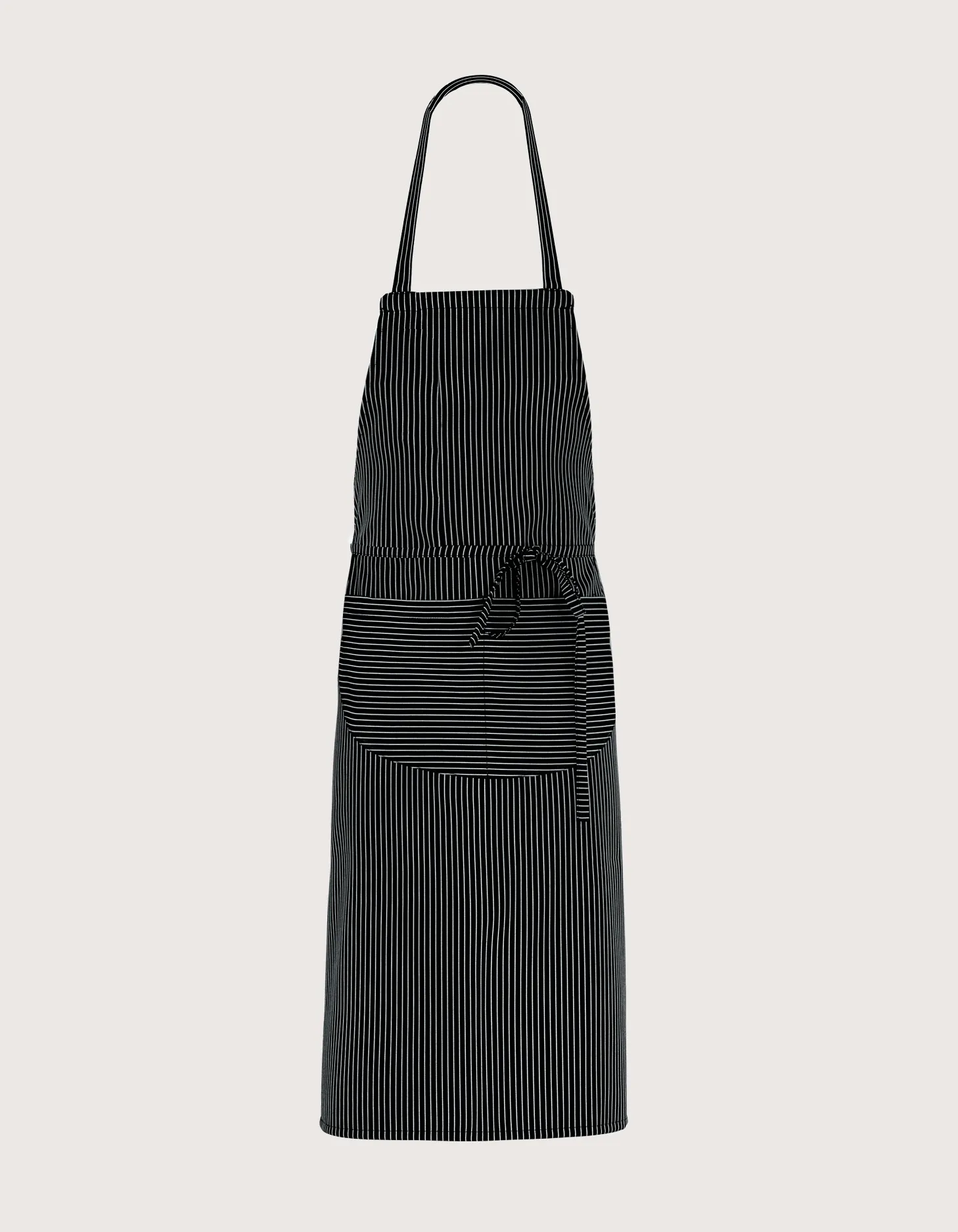 Long unisex apron for chefs/cooks, 70×95, pinstripe fabric of your choice. Features: 100% cotton, large central pocket divided into two compartments, adjustable velcro neck and waist ties. Washing guaranteed up to 60°C. 100% Made in Italy. Ideal for kitchens in restaurants, pubs, bakeries, and gastronomy.