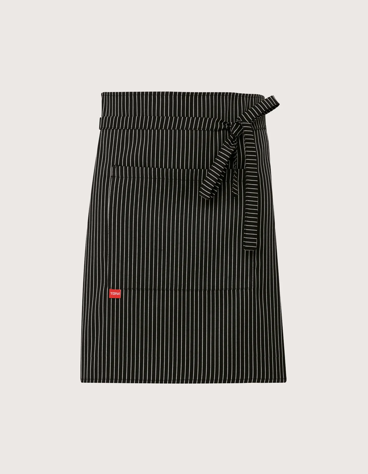 Features: 100% cotton fabric, no bib but with a practical central pocket and ties at the waist. Washing guaranteed up to 60°C.