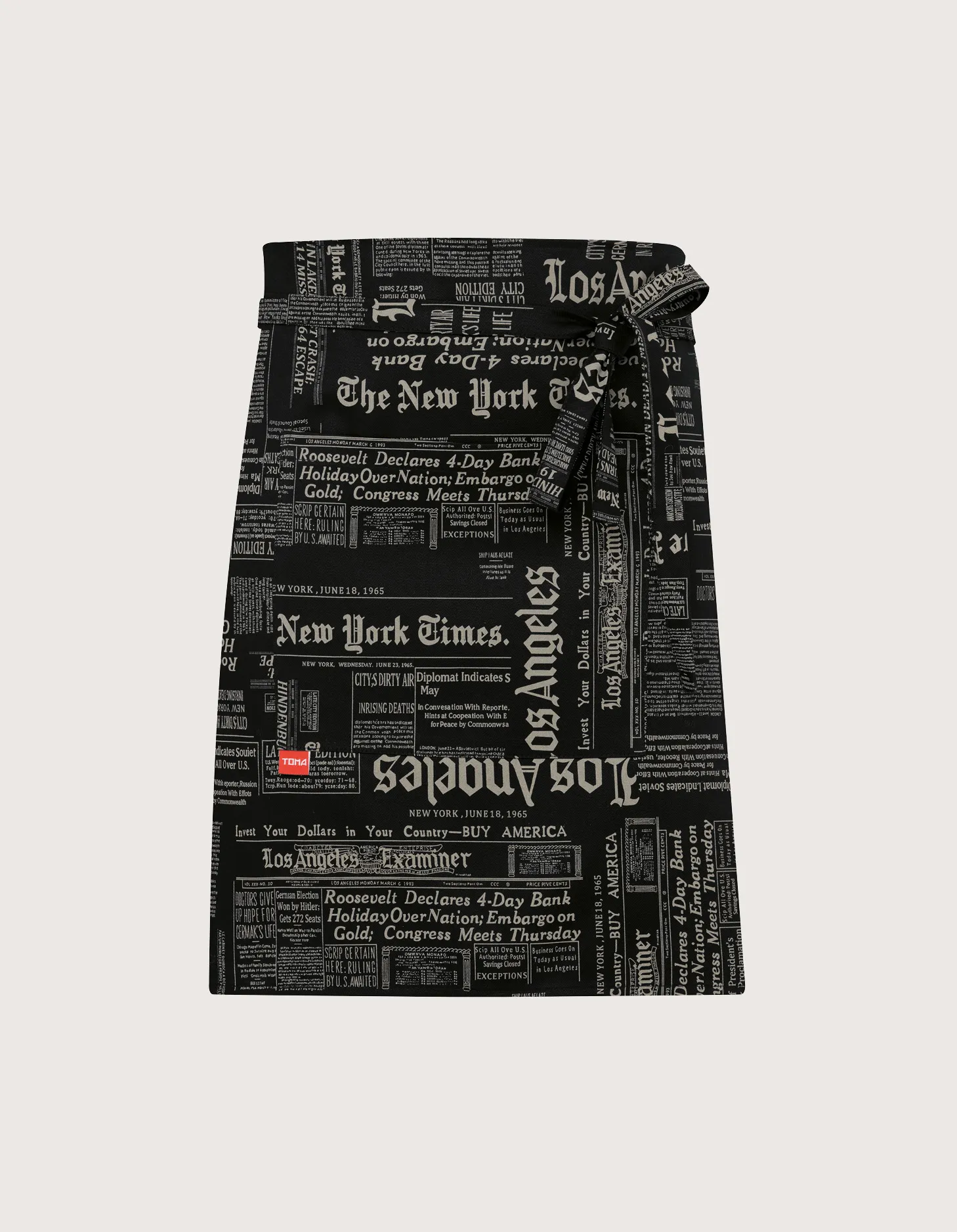 Pair of unisex kitchen aprons (size 70×45 H); black with “Newspaper” print.