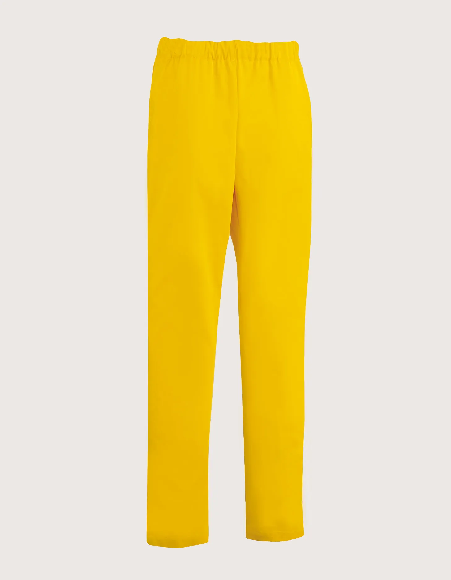 Unisex pants with drawstring & elastic waistband, featuring two large side pockets and one back pocket, available in white or yellow. Features: fabric blend 35% cotton, 65% polyester. Comfort fit. Sizes available from XS to XXXL. Washable up to 70°C. Robin pants are suitable for all sectors, from food service to medical, as they are practical, breathable, and hygienic.