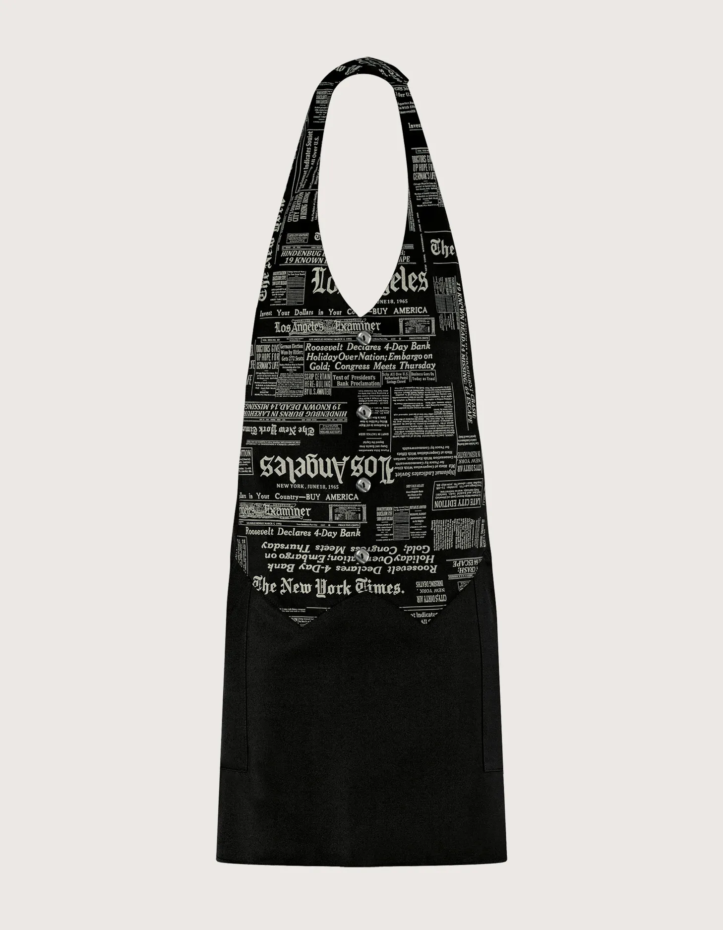 Apron “Simon” Black with Newspaper-Patterned Bib/Vest