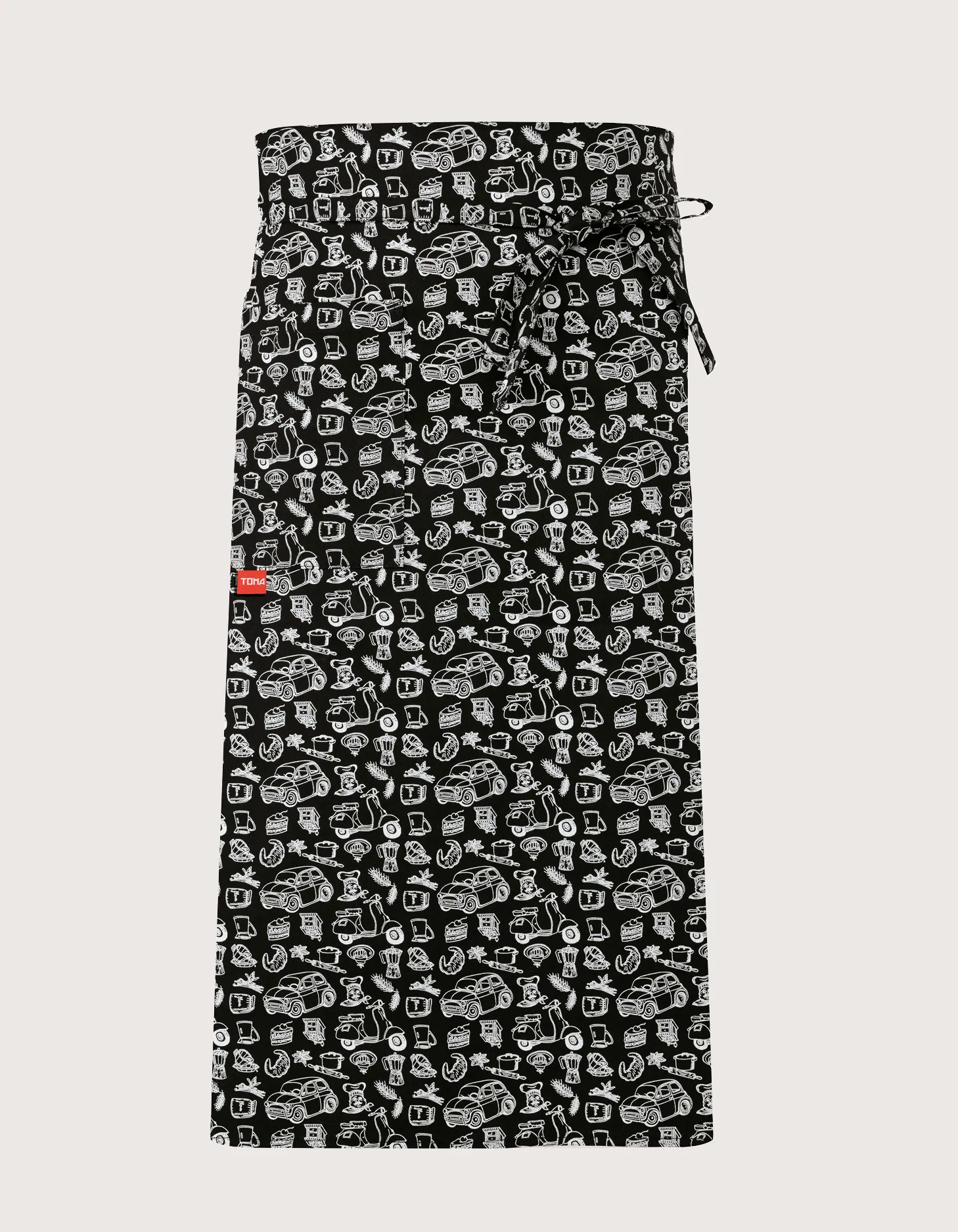 Pair of unisex aprons for chefs/cooks, 85×65, black with “Italy” print. Features: 100% cotton, without bib but with a useful side pocket and tie waist. Machine washable up to 60 degrees. 100% Made in Italy. Ideal for professional kitchens, restaurants, pubs, food labs, and delis.