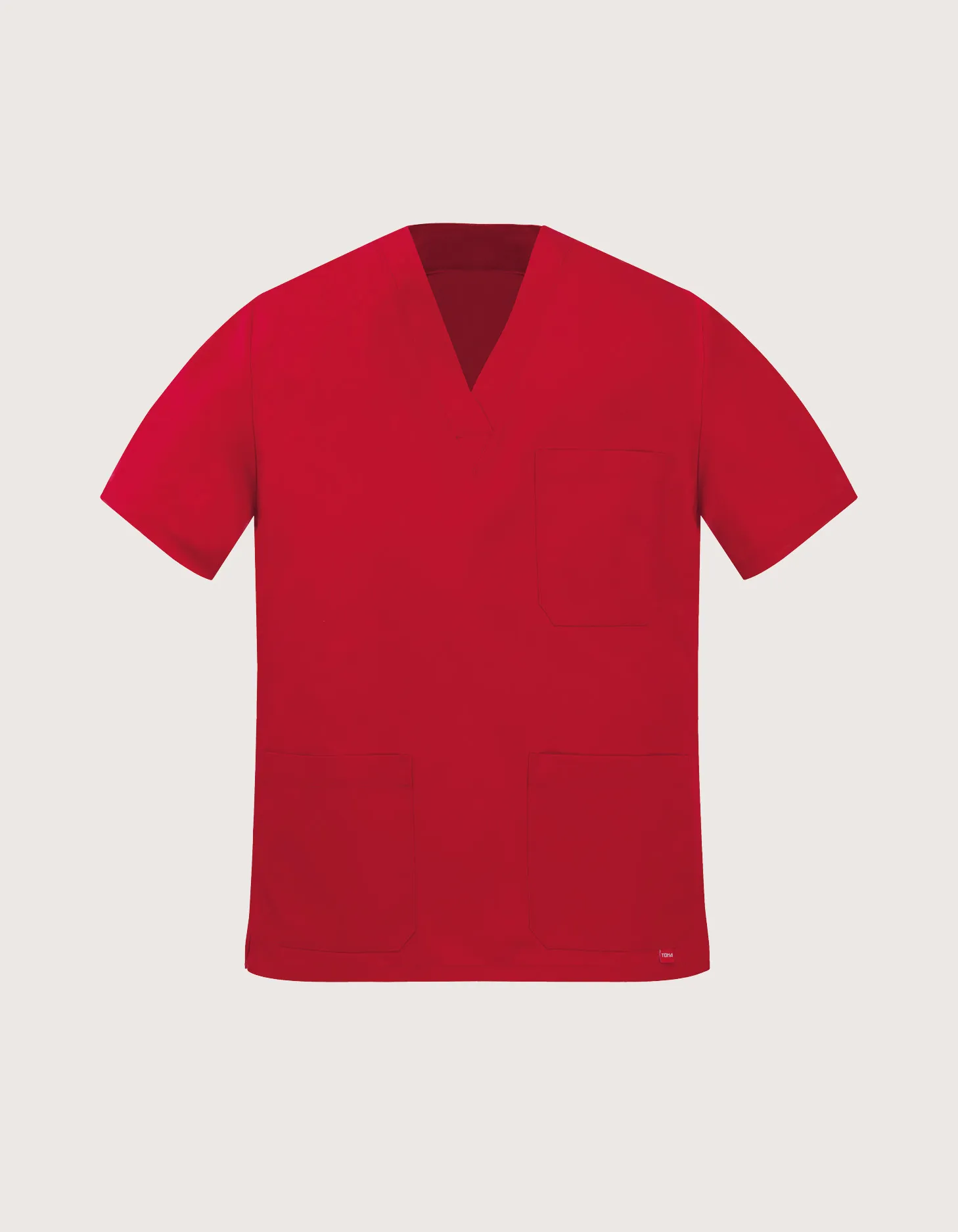 Unisex short-sleeve scrub top “Zeus” available in solid colors: classic white or black, as well as red and yellow. V-neck design with three pockets: two side and one chest pocket. Made of a 65% polyester – 35% cotton blend fabric (195 g/m²), straight cut with small side slits. Available in sizes XS to XXXL. Washable up to 70°C, both in white and colored versions. Particularly suitable for the healthcare, beauty, and pharmaceutical sectors (healthcare operators, doctors, nurses, beauticians). The “Zeus” scrub top can be paired with Robin trousers in matching colors. Professional clothing by Toma Youniform, 100% Made in Italy.