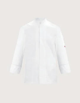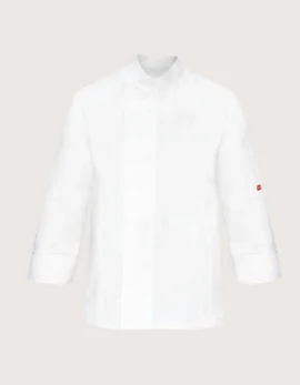 Unisex chef jackets, long sleeves, very light and comfortable. Available colors: white and black. Features: 100% cotton fabric; ventilation mesh on the back; small pocket on the left sleeve; Mandarin collar. Closure: side fastening with covered press studs, not in contact with the skin. Available sizes: from XS to XXXL. Washable up to 60°C. 100% Made in Italy. Suitable as a professional uniform for kitchens, pastry shops, gastronomy, and food laboratories.