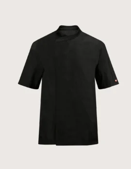 Unisex black short sleeve chef jacket “100 Grams”, very light and comfortable. Features: 100% cotton fabric; ventilation mesh on the back; small pocket on the left sleeve. Closure: side fastening with covered press studs, not in contact with the skin. Available sizes: from XS to XXXL. Washable up to 60°C. 100% Made in Italy. Suitable as a professional uniform for kitchens, pastry shops, gastronomy, and food laboratories. Also available in white