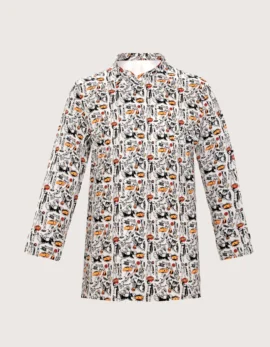 Gordon unisex chef/cook jacket, long sleeve in the “Superhero” print, made of 100% cotton with ventilation on the back; pocket on the chest and left sleeve. Closure: side with covered snap buttons, not in contact with the skin. Sizes available: XS to XXXL. Washable up to 60°C (excellent color retention). Can be coordinated with various aprons, with or without bib, pants, and hats in the same print.