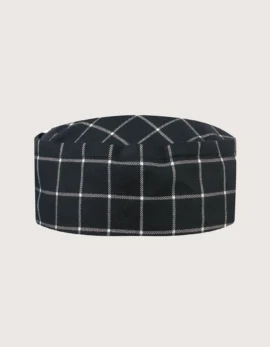 “Imatra” kitchen skull cap in 100% cotton, 200 g/m², pattern “Black & white checks”. Machine washable up to 60°C. 100% Made in Italy, ideal for completing the kitchen uniform in restaurants, pubs, delis, and food laboratories.
