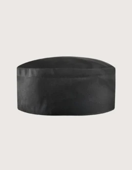 “Palmas” chef hat in 100% cotton, 190 g/m², solid colors available in white and black. Machine washable up to 60°C. Ideal for restaurants, pubs, delis, and food laboratories.