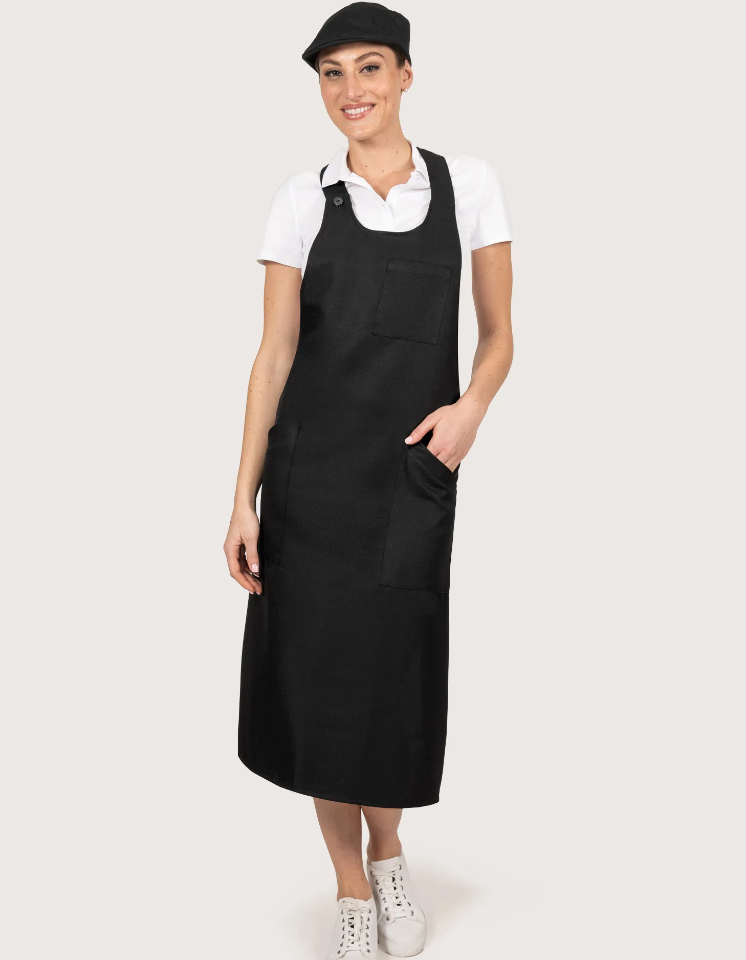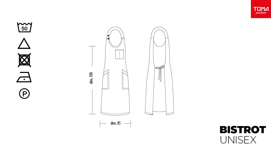 Grembiule “Bistrot” colori a scelta marrone o nero dim. 85×100 H. Caratteristiche: unisex & taglia unica, tessuto 100% poliestere, doppie tasche laterali e sul petto chiusura posteriore con lacci. Eleganti e pratici possono essere lavatati a 50° C, si asciugano rapidamente e sono facili da stirare, perfetti come divisa da lavoro per cantine, bar, enoteche e bistro e per cameriere in servizio in sala. Abbigliamento professionale per la ristorazione. Prodotto da Toma Youniform, 100% Made in Italy.