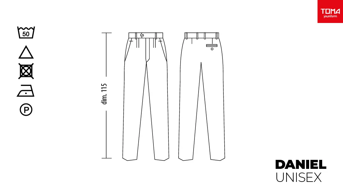 Pantaloni da cameriere uomo classico “Daniel”, con linea elegante e confortevole, foderati davanti fino al ginocchio per garantire una vestibilità ottimale e maggiore comfort durante il servizio. Tessuto: 100% poliestere, resistente e facile da lavare. Colori: nero. Taglie disponibili: dalla 44 alla 60. Pratici e funzionali, ideali per completare la divisa del personale di sala in ristoranti, hotel ed eventi di catering. Prodotto 100% Made in Italy.