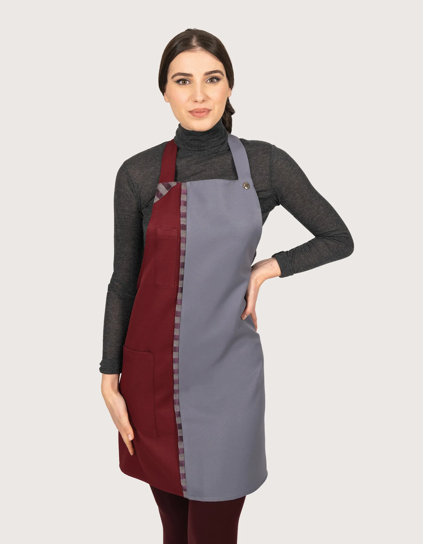 Grembiule sala/bar con pettorina Bordeaux-Grigio “Oslo”